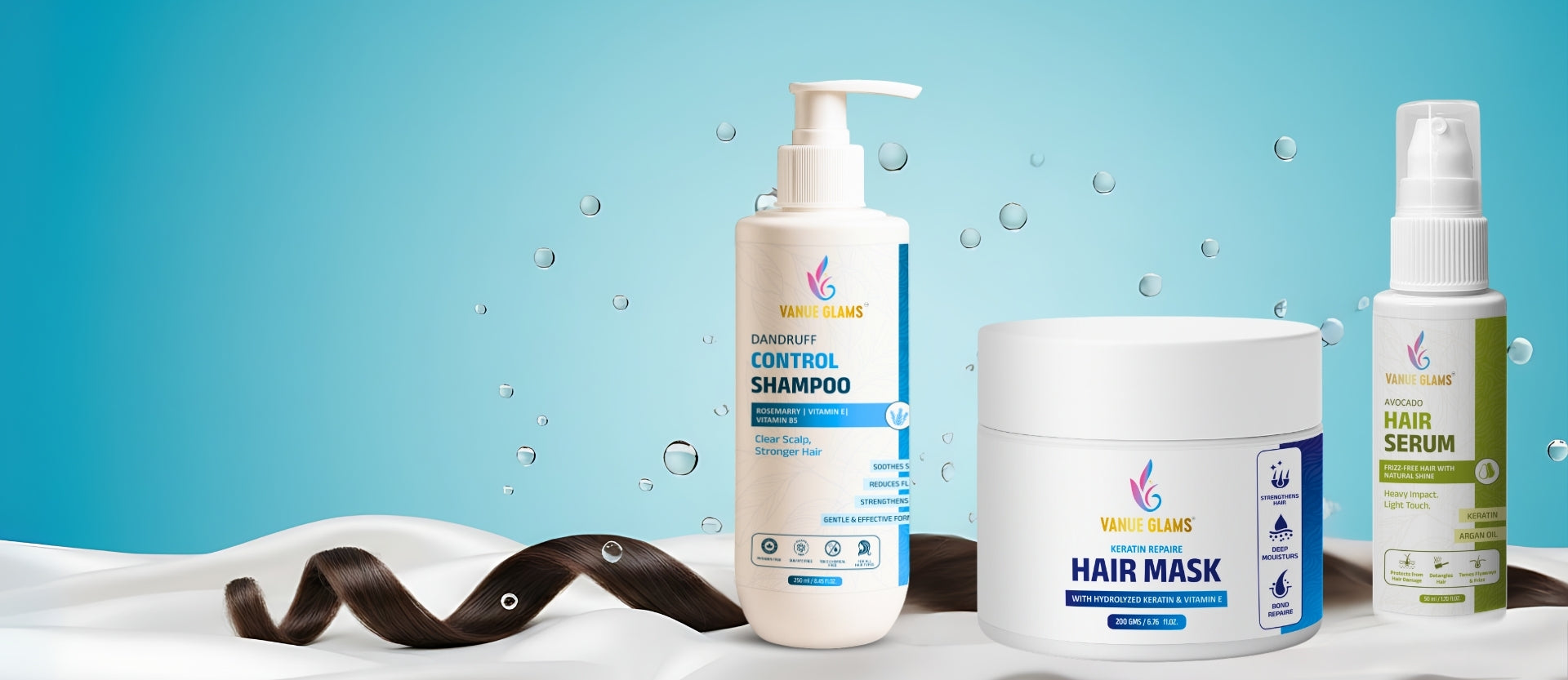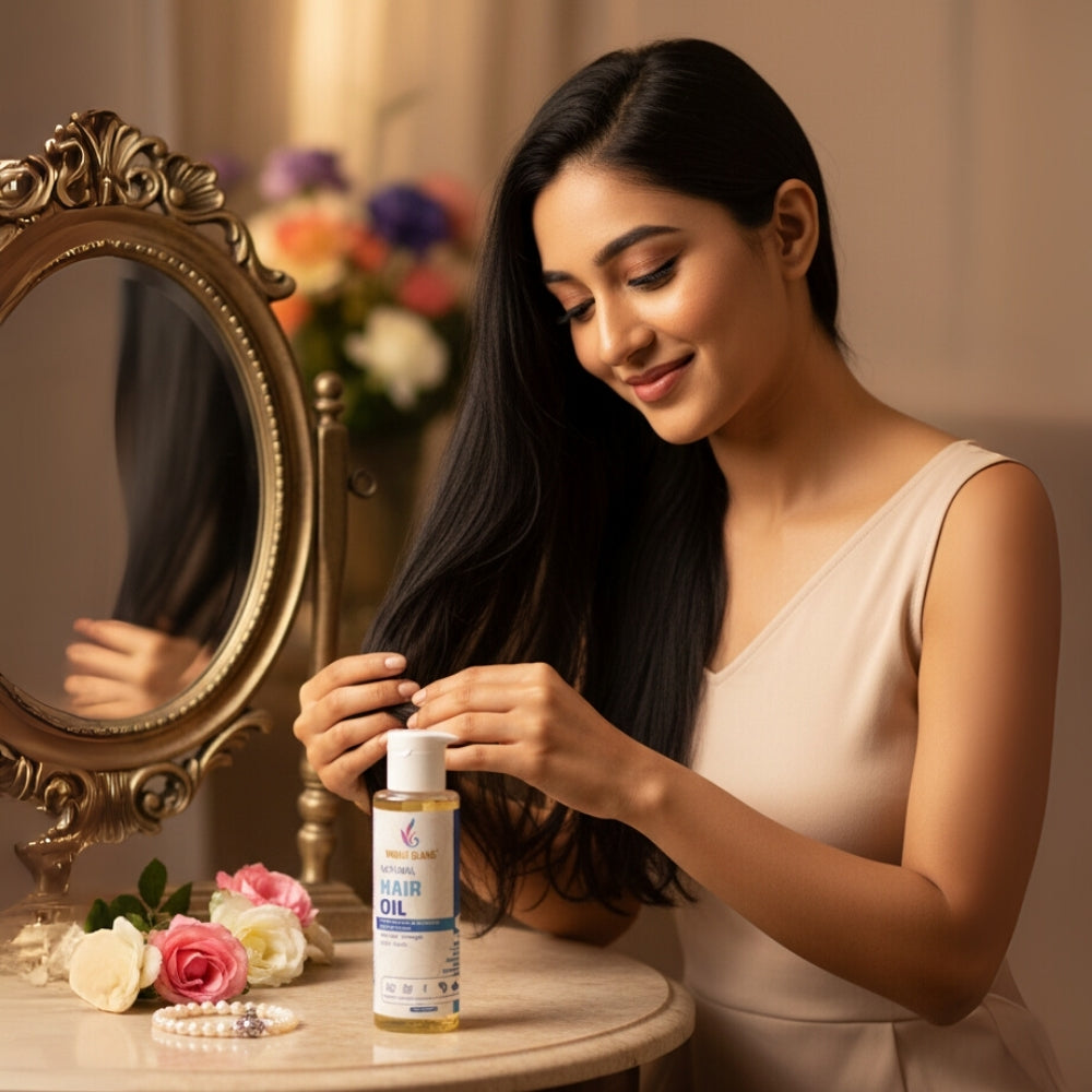 Vanue Glams Natural Hair Oil is enriched with 18 botanical oils and herbal extracts that deeply nourish your scalp and hair. It helps reduce hair fall, strengthens roots, and promotes healthy growth while adding natural shine. With its gentle yet effective formula, every drop brings softness, strength, and vitality to your hair.
